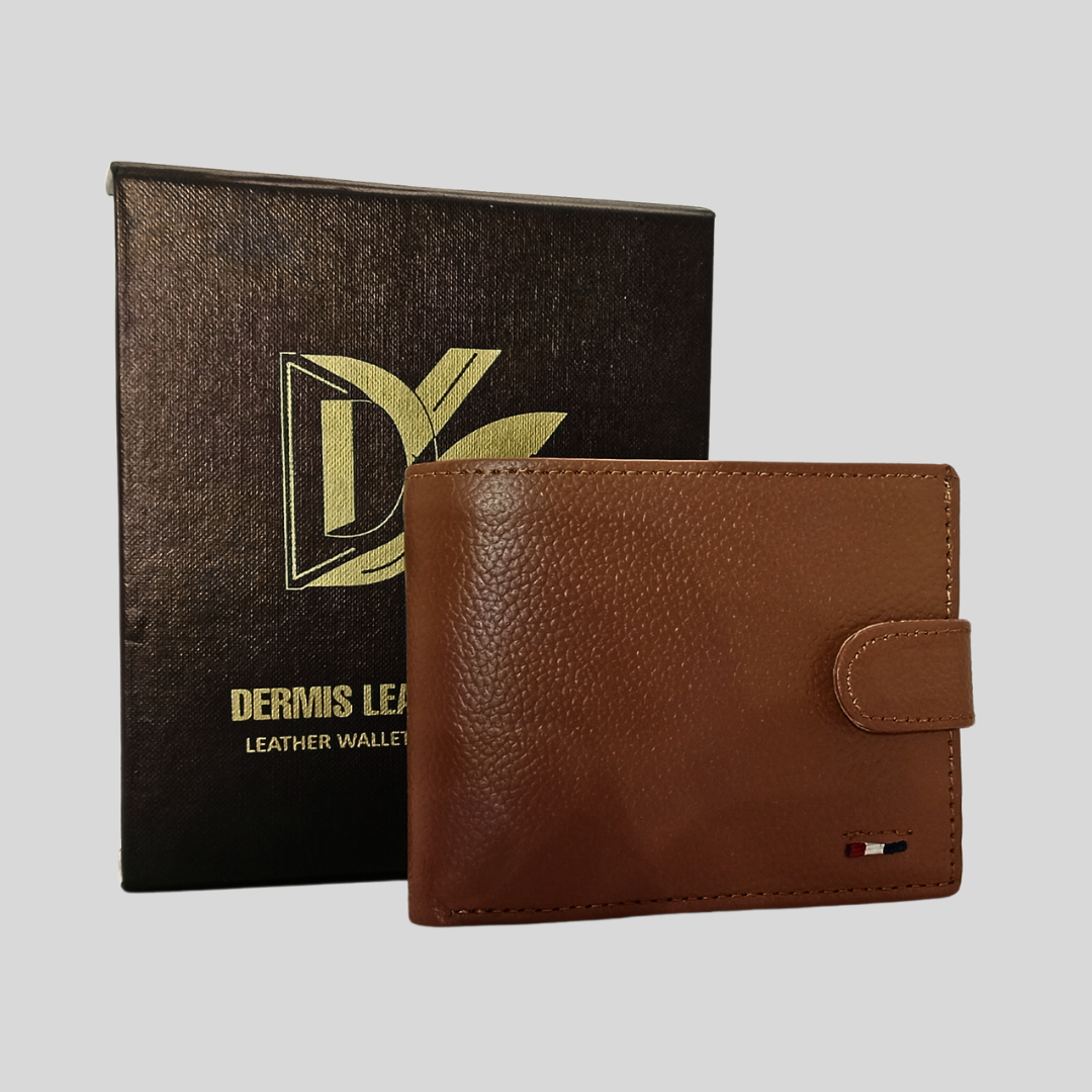 Discover the ideal accessory for the modern individual who values both elegance and practicality. Our Dermis Leather wallet is meticulously crafted from 100% genuine pebbled leather, offering a soft, luxurious feel and the durability to withstand daily use. The rich brown hue and classic design are complemented by a secure snap-button clasp, ensuring your belongings stay safely in place.