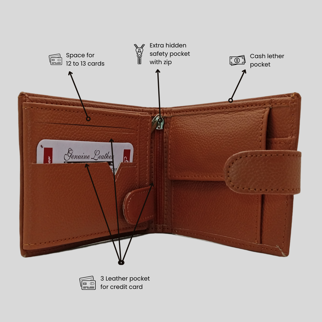 - Spacious Cash Compartment:Â The full-length cash leather pocket is designed to hold your banknotes flat and organized.