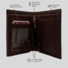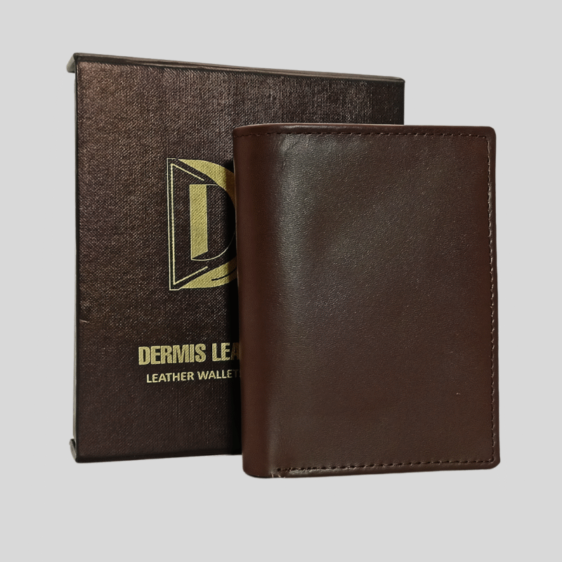 Step up your style with this exquisitely designed vertical bifold wallet from Dermis Leather. Crafted from premium, smooth genuine leather in a deep brown hue, this wallet offers a contemporary alternative to traditional designs. Its portrait orientation is not only stylish but also provides a comfortable and natural fit in your jacket or pants pocket.
